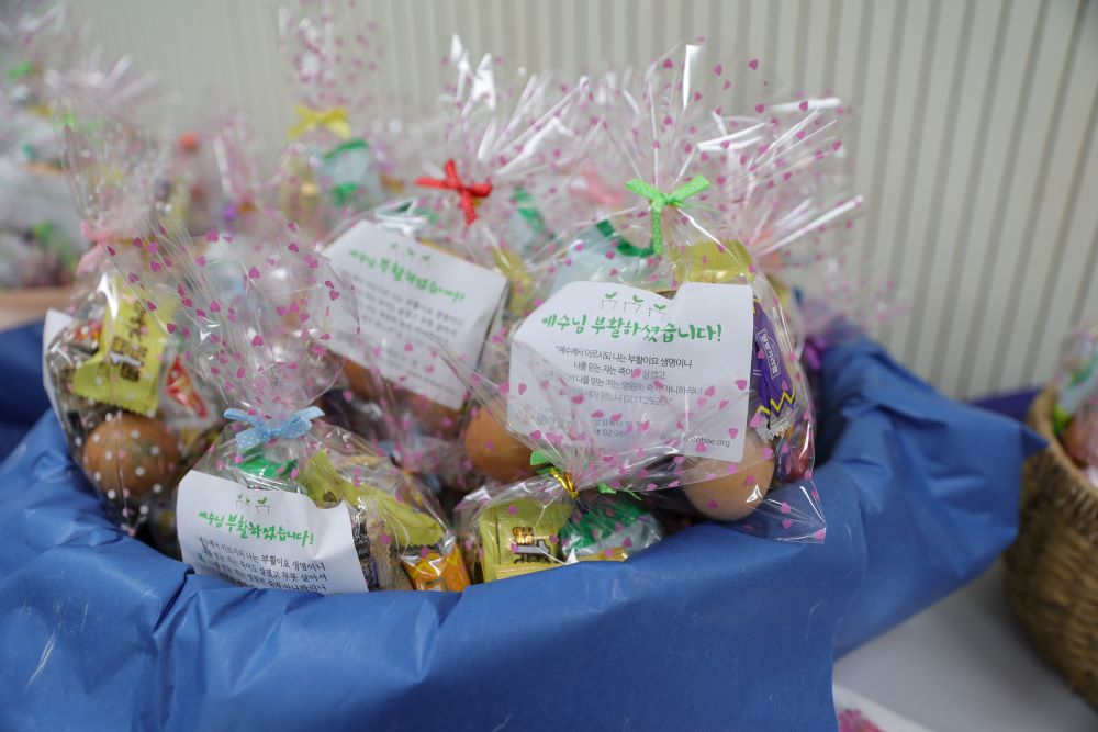 3월 30일(토) 부활주일을 기다리며, 부활의 기쁜 소식을 전하는 부활절 선물로 계란을 포장했습니다.