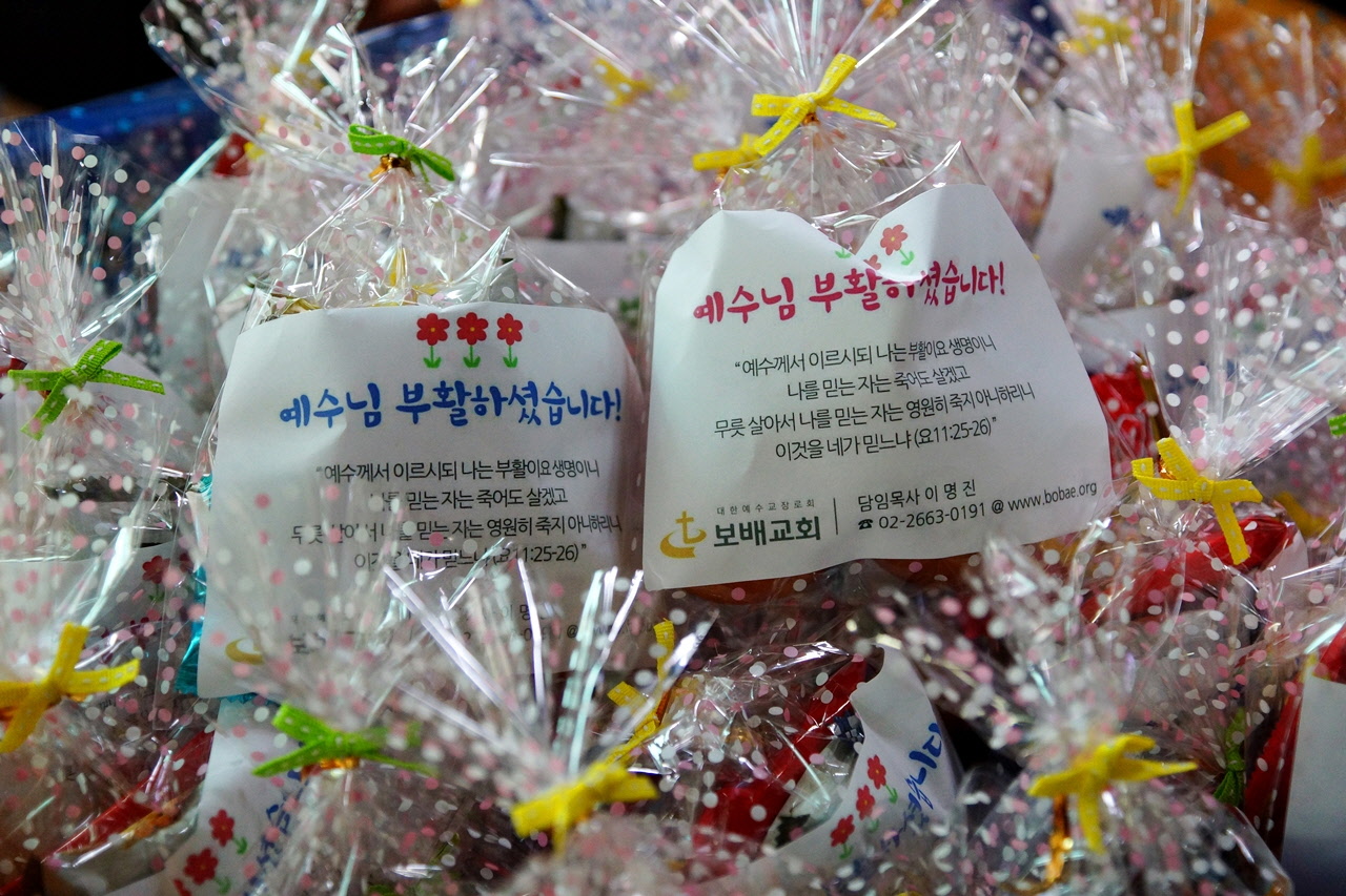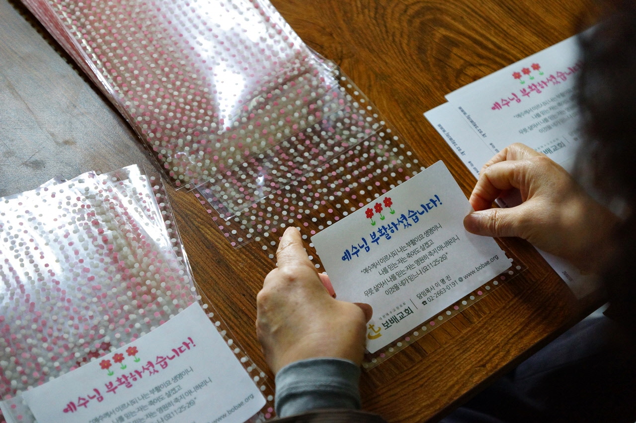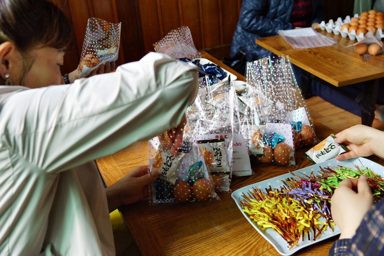 부활절을 앞두고 주님의 사랑을 전하기 위한 계란 포장을 하였습니다. 이 계란은 지역 주민들에게 부활의 기쁜 소식과 다음 주 토요일에 있을 바자회 홍보를 위해 쓰일 예정입니다. 주님의 부활을 모두가 기뻐하는 그 날이 오길 소망합니다.