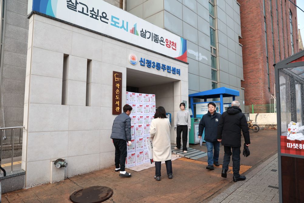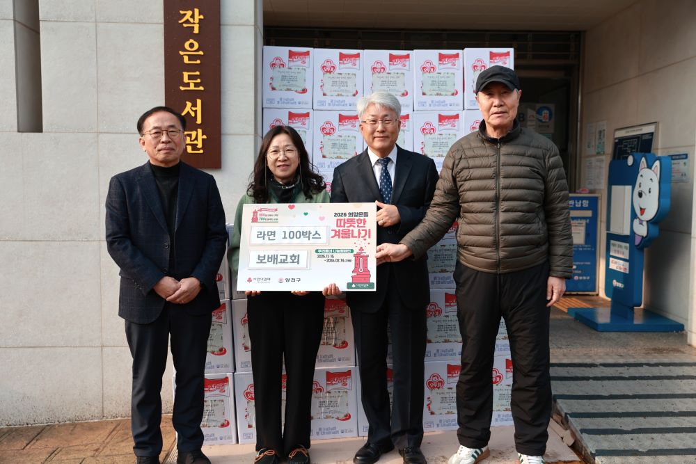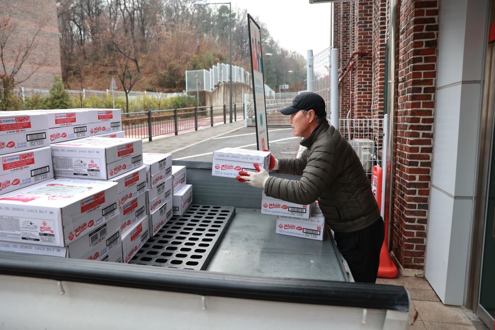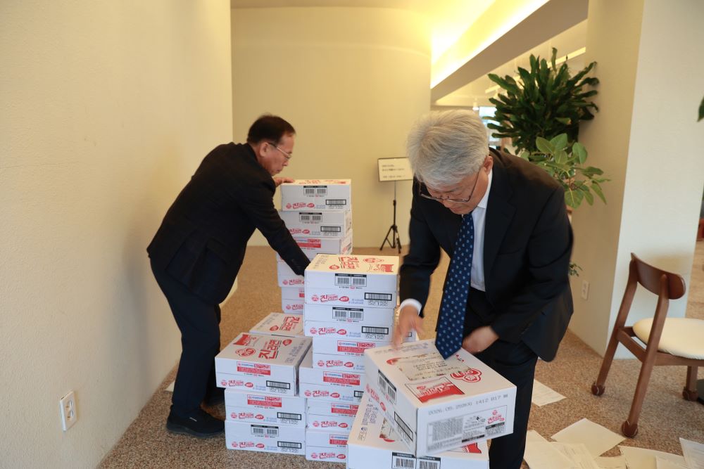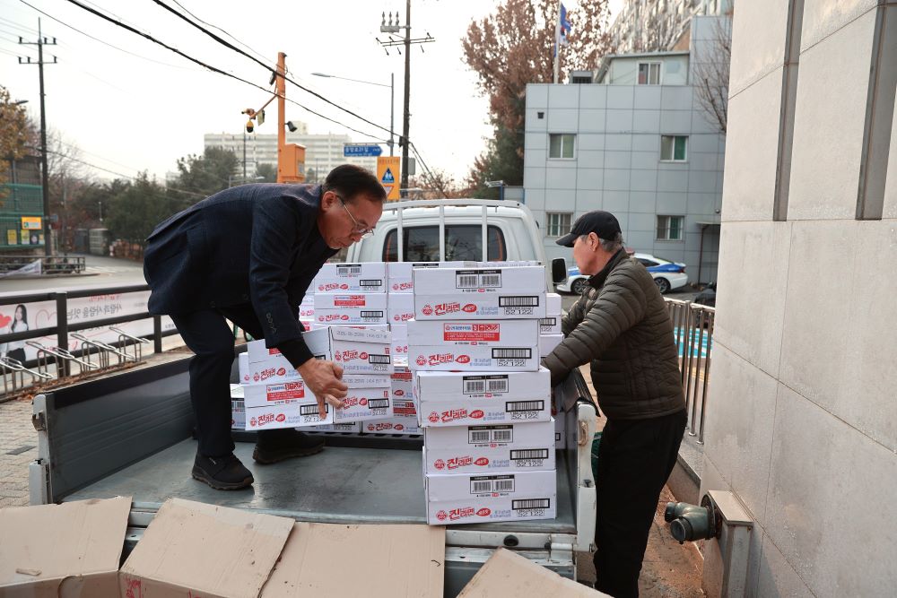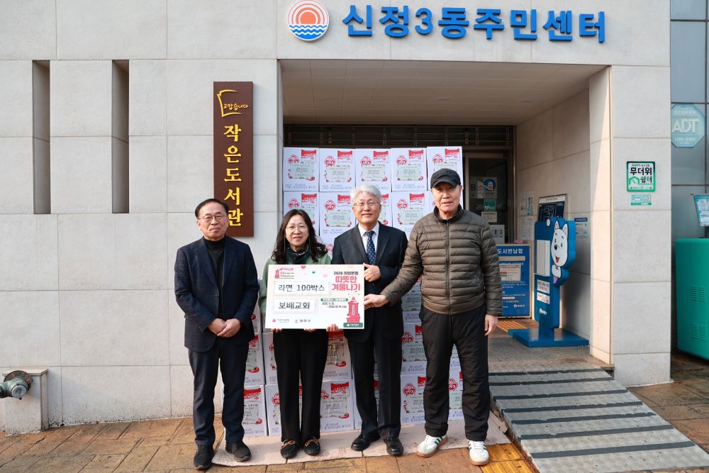 이번에는 신정3동 주민센터를 통해 라면 100박스를 전달하였습니다.