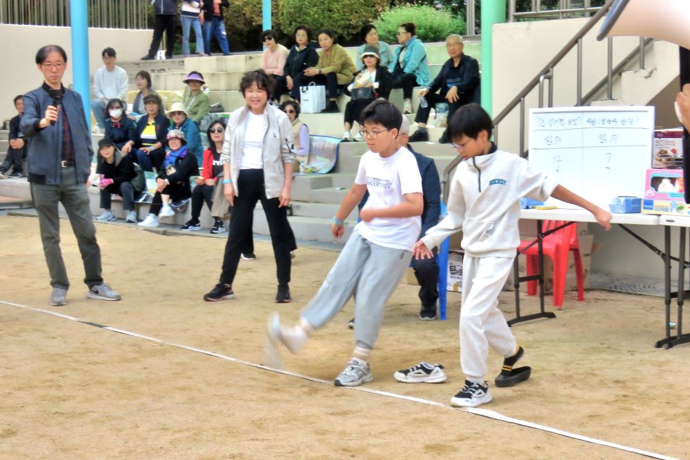 주일예배를 마치고 교회 앞에 있는 남명초등학교 운동장에서 전교인 한마음 체육대회를 진행했습니다.