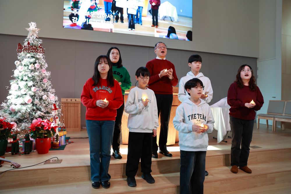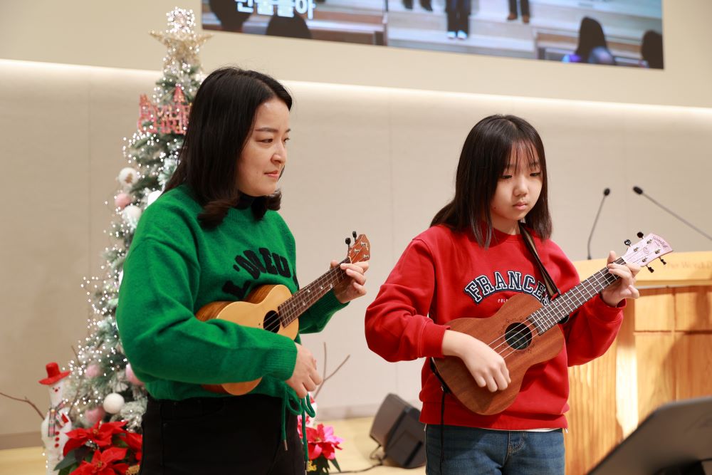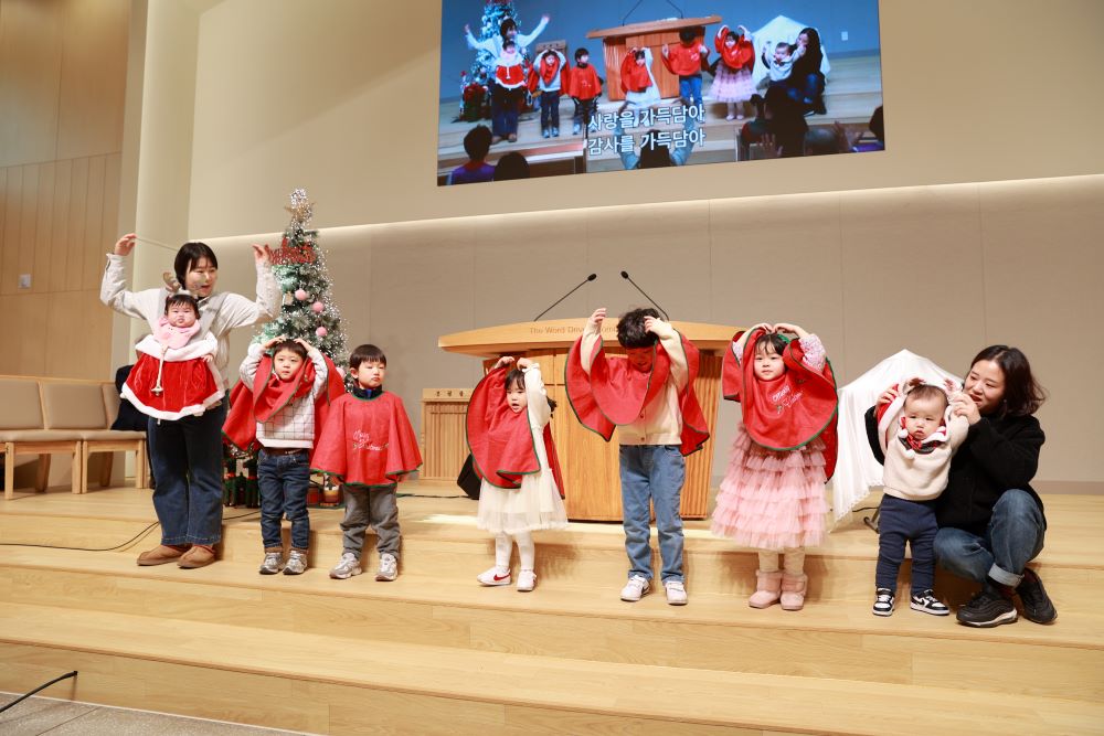 성탄절을 맞아 온 가족이 한 자리에 모여 성탄감사예배로 드렸습니다. 주일학교 발표회 시간에는 유아유치부 아이들의 사랑스러운 율동으로, 그리고 초등부 아이들의 아름다운 캐롤연주로 하나님께 영광을 돌렸습니다. 이 땅에 오신 아기 예수님의 탄생을 기념하며, 기쁨과 감사로 하나님께 예배하는 시간이었습니다.