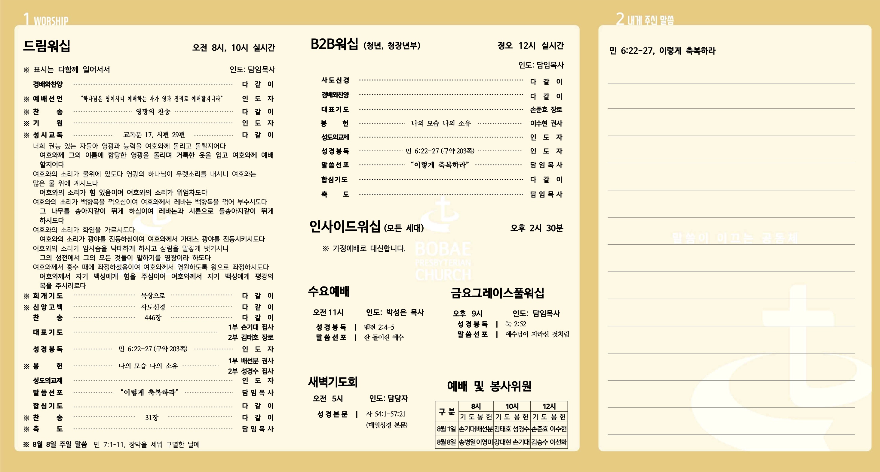 [2021년 8월 8일] 주보 및 주간기도제목표