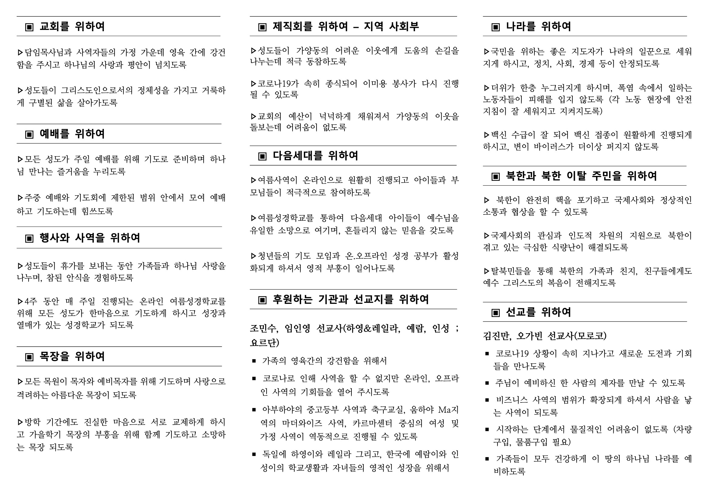 [2021년 7월 25일] 주보 및 주간기도제목표