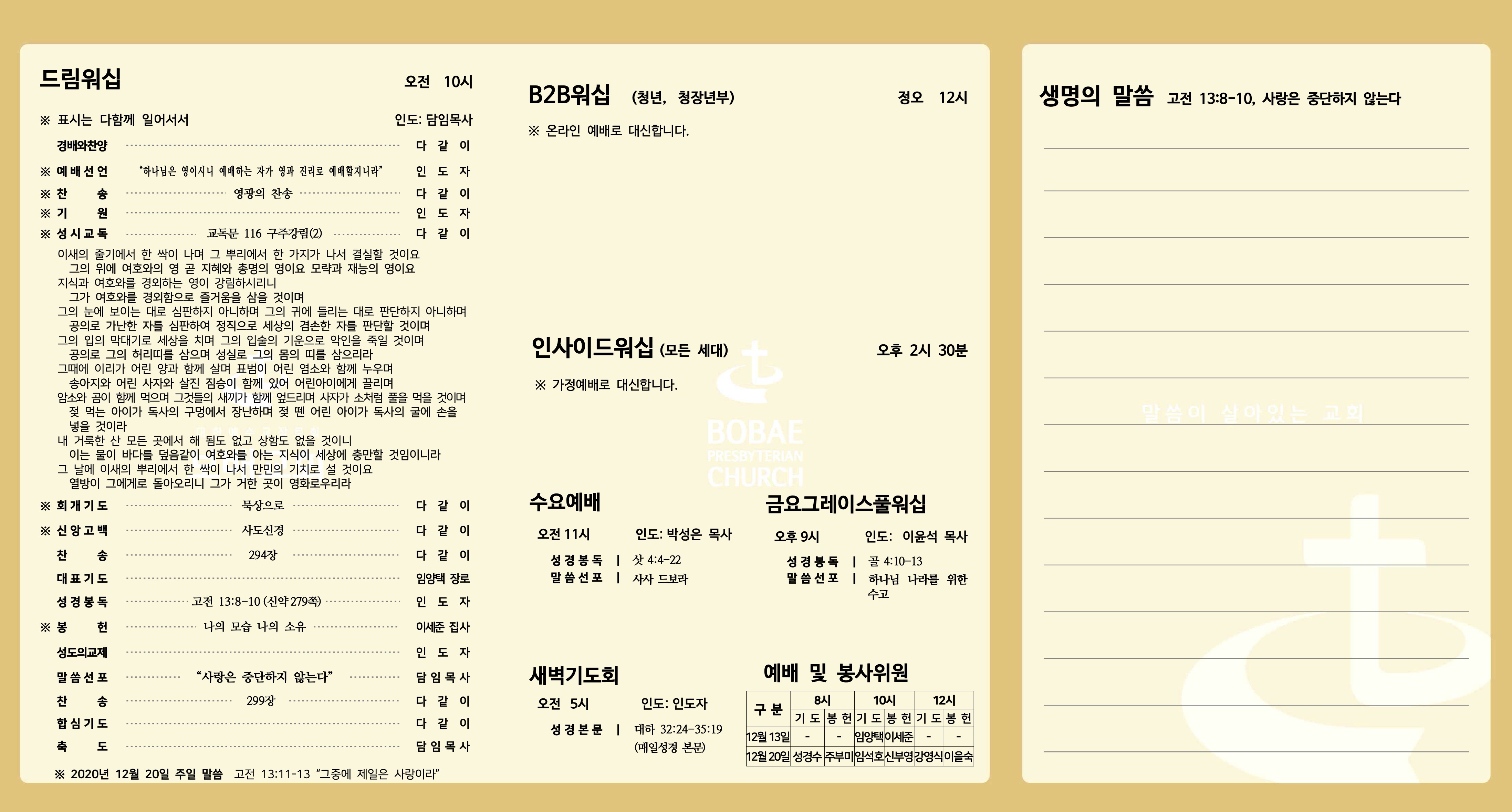 [2020년 12월 13일] 주보 및 주간기도제목표