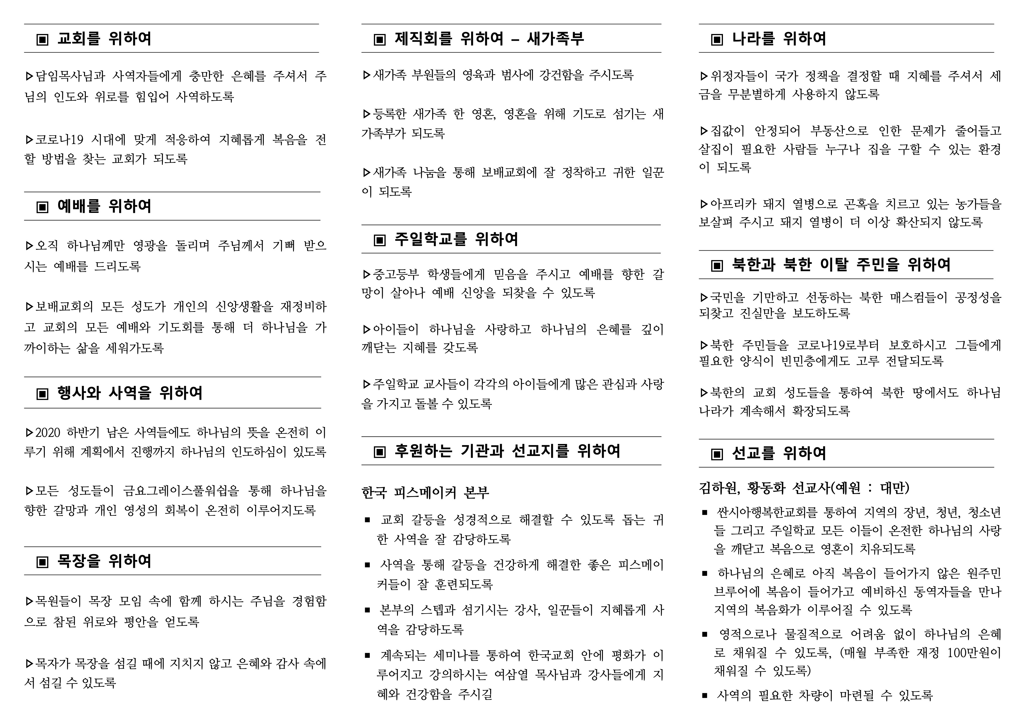 [2020년 10월 11일] 주간기도제목표