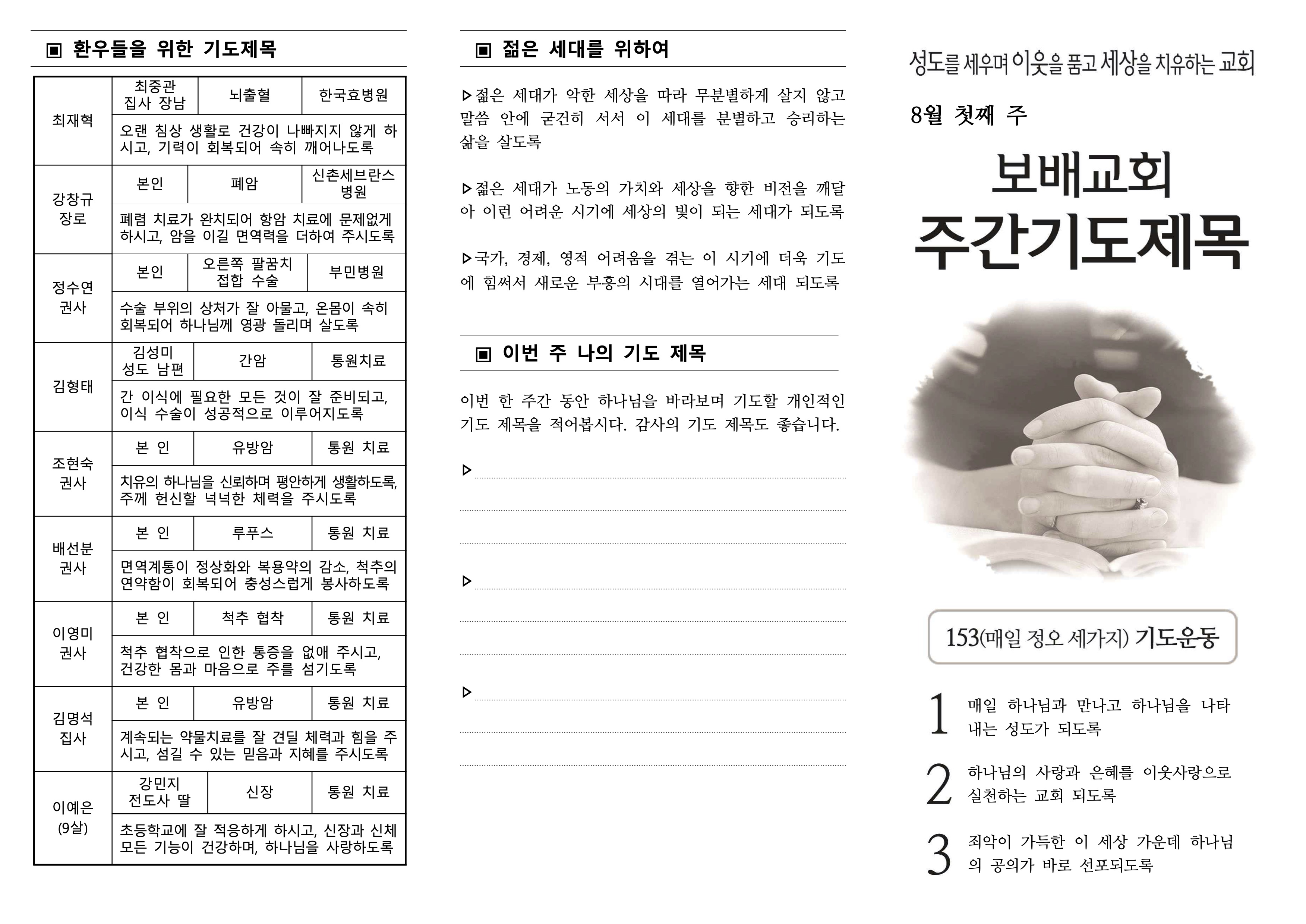 [2020년 8월 2일] 주간기도제목표